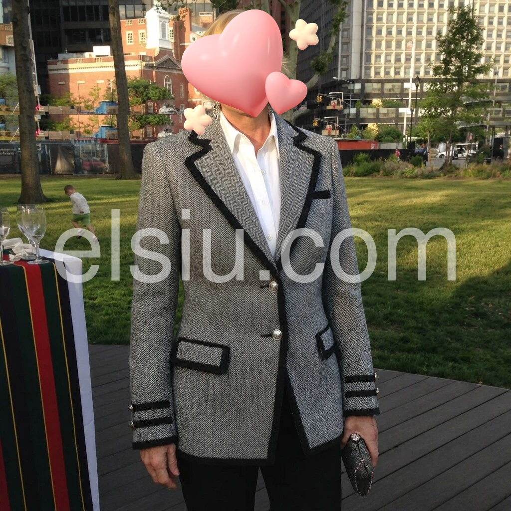 This Chic herringbone blazer features a refined black trim and a timeless double-breasted silhouette, offering a sophisticated yet versatile addition to your wardrobe. Crafted to provide both structure and style, it elevates professional and smart-casual ensembles with subtle texture and sharp tailoring. Ideal for those seeking a classic blazer with contemporary detailing.