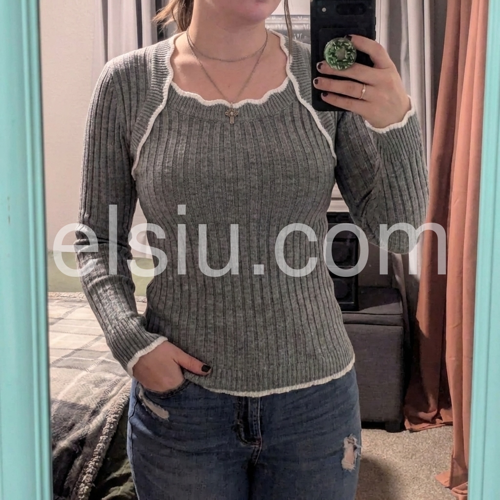 Grey Square Neck Long Sleeve Sweater