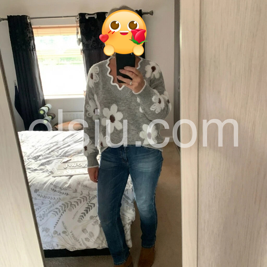 Grey V-Neck Floral Print Sweater
