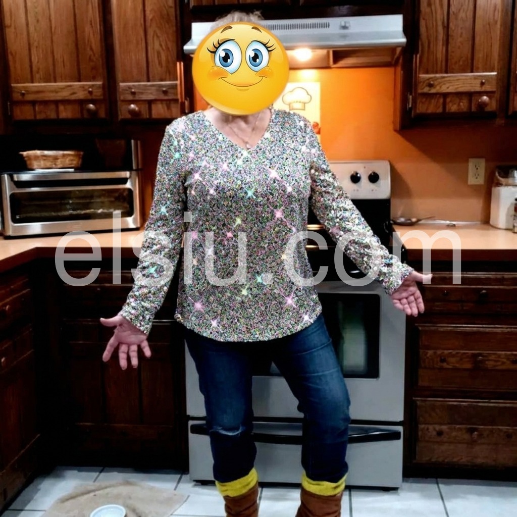 Nothing but fun disco times head with this holiday top! This cheerful top features a total glam disco ball metallic print, perfect for adding fun-loving vibes and seasonal cheer this winter and beyond. The long sleeves, waist-length fit, and round collar provide the right amount of coverage for cooler nights and days.