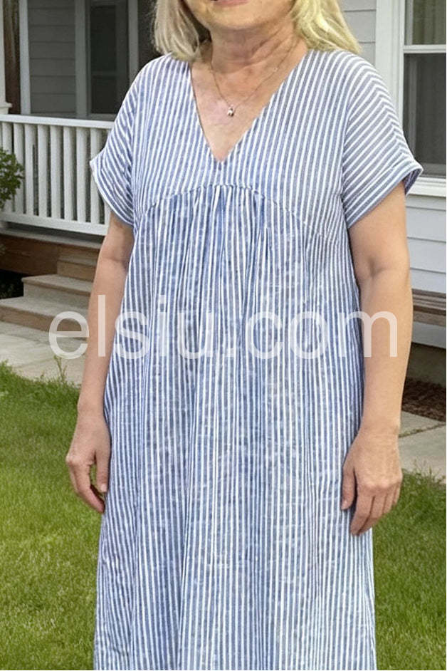 This Youthful Striped Print V-Neck Midi Dress is designed for the modern fashion-forward woman. Made with a flattering V-neckline and eye-catching striped print, this dress is versatile and perfect for any occasion. Its midi length adds a touch of elegance, while the youthful design adds a playful touch. Elevate your wardrobe with this must-have dress.