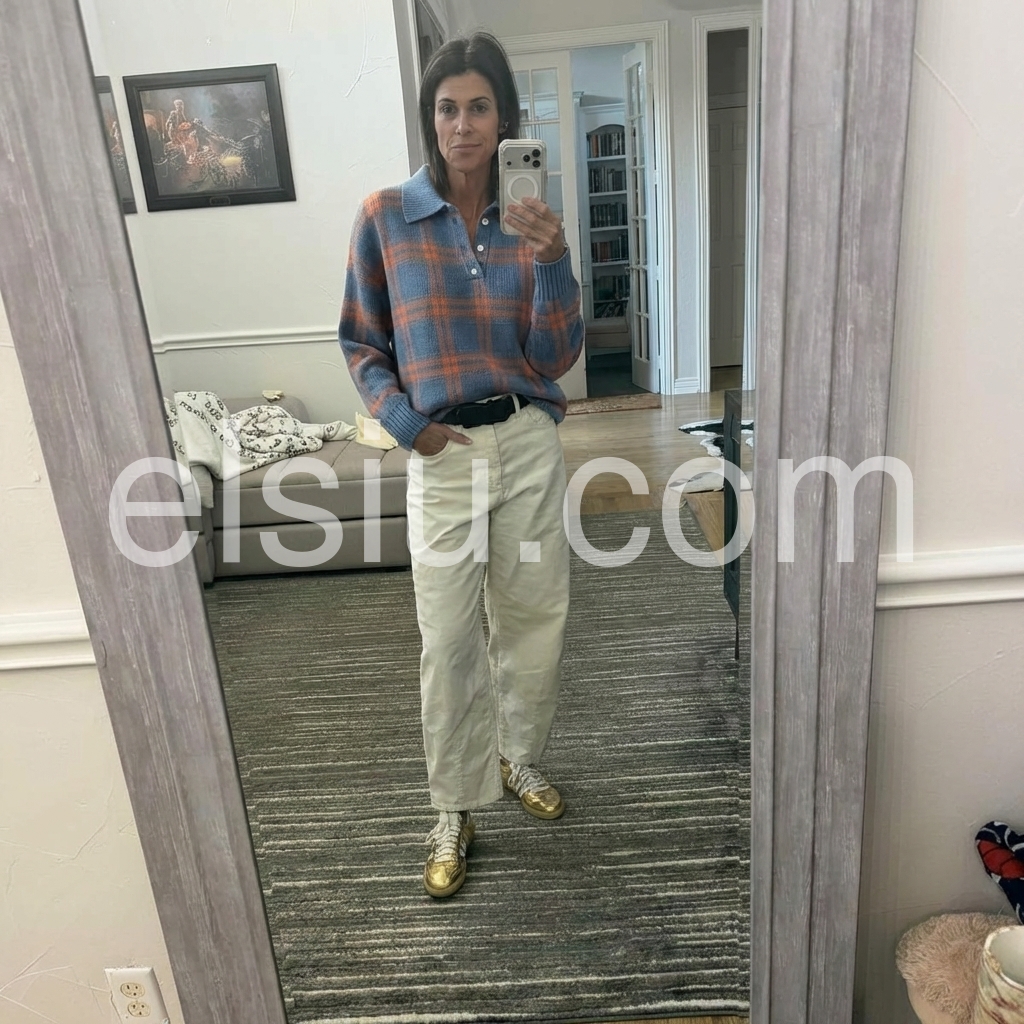This blue plaid long sleeve knit polo sweater combines classic style with cozy comfort. Crafted with a button-front design, it offers adjustable ventilation and a refined look. The soft knit fabric ensures warmth and flexibility, making it ideal for layering in cooler weather. Its timeless plaid pattern adds a sophisticated touch, perfect for elevating both casual and smart-casual outfits.