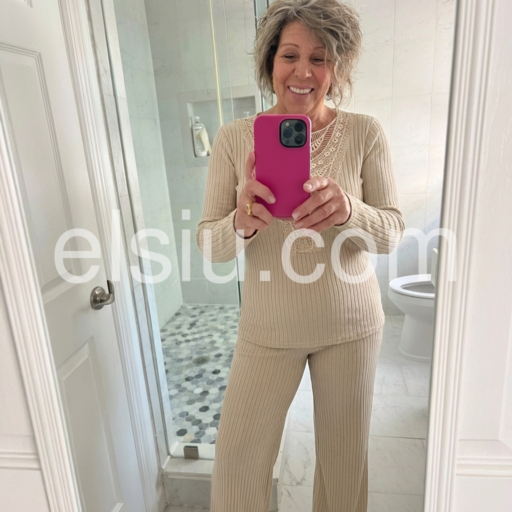 Achieve an effortless look this season with this Apricot Round Neck Two Piece Set. Featuring an apricot color, round neck shirt and matching lattice-hem cropped pants, this set is designed for comfort and style. Crafted from lightweight and breathable fabric, it can be worn for any occasion.
