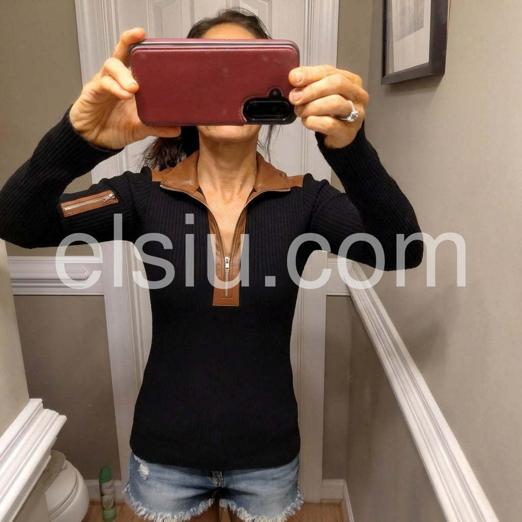 Elevate your everyday wardrobe with this sophisticated half-zip long sleeve top. Crafted in a timeless black hue, it seamlessly transitions from casual outings to professional settings. The half-zip design offers versatile styling options and practical temperature control, while the long sleeves provide coverage and a polished silhouette. Perfect for layering or wearing solo, this essential piece delivers understated elegance with modern functionality.