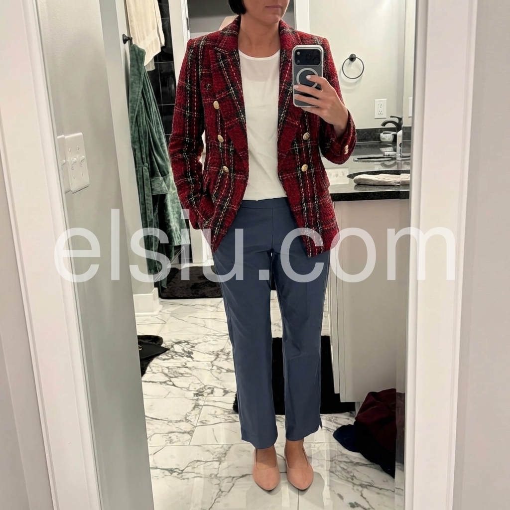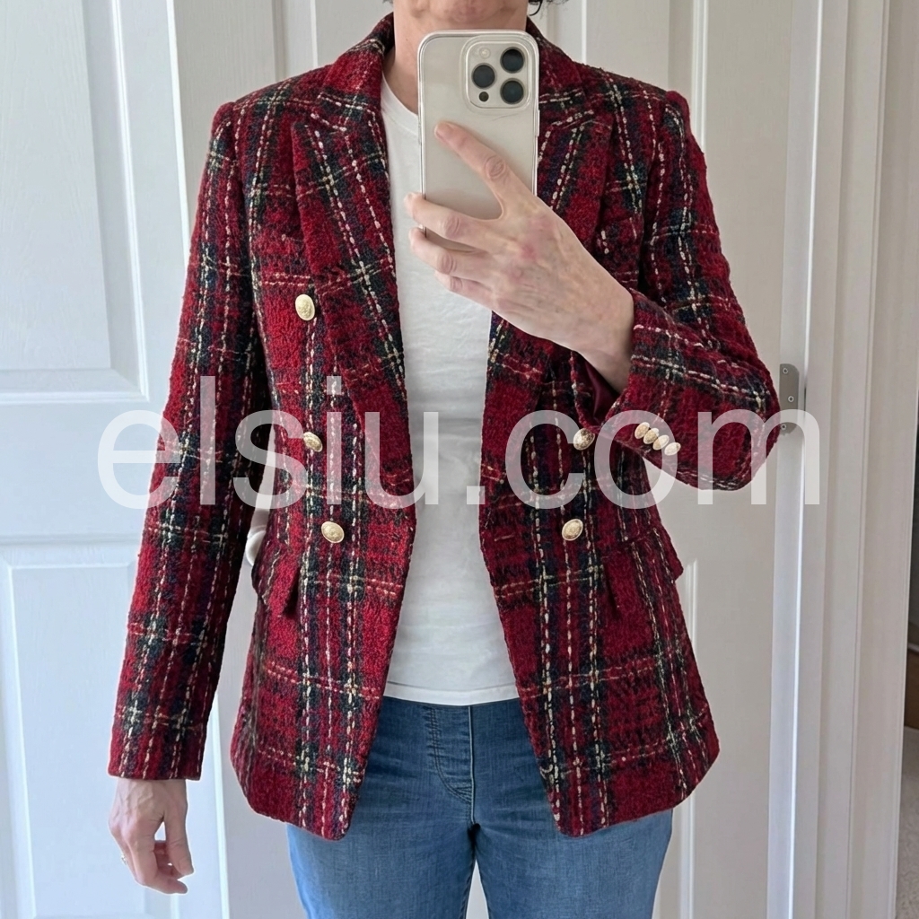 Upgrade your wardrobe with this Red Long Sleeve Check Blazer. This stylish blazer features a bold red color and a classic check print, perfect for making a statement. Crafted with long sleeves, it offers comfort and style all day long. Elevate your look with this versatile piece.