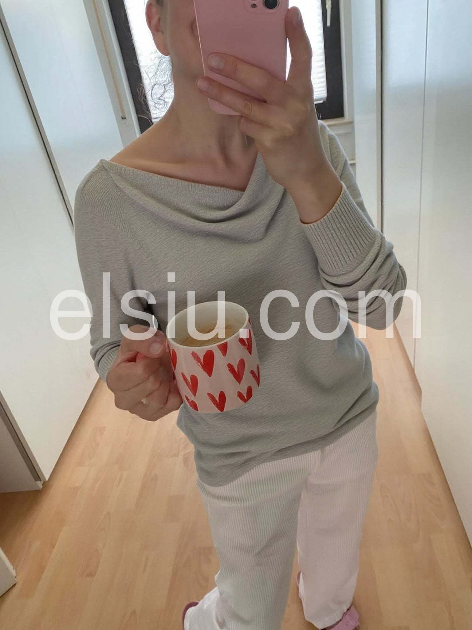 Grey Long Sleeve Plain Sweater