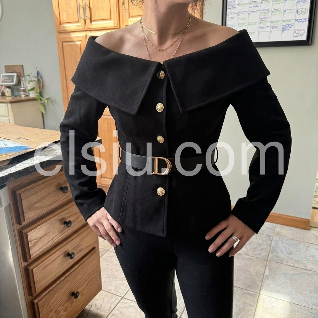- Neckline: Collared