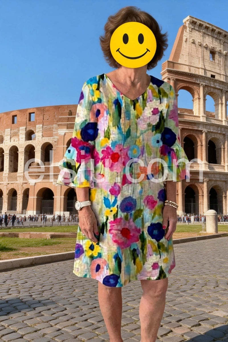 You know that feeling when a dress just *gets* you? This is it. Our veteran tailors obsessed over every detail—multiple fitting rounds, real feedback from real bodies, and a refresh just last week based on what our customers told us. The result? A silhouette that actually flatters without trying too hard. The romantic floral print pairs effortlessly with the V-neckline and 3/4 sleeves in a forgiving shift cut that moves with you. Here's the thing: we spent months working directly with boutique mills to land this designer-quality rayon blend at a price that shouldn't exist. The craftsmanship is intricate, which means our stock is genuinely limited and moves fast. As Coco Chanel said, "Fashion is not something that exists in dresses only—it exists in the sky, in the street." This dress proves it. 55% rayon, 45% elastane. Machine washable. Grab it while it's here—once it's gone, there's no guarantee of a restock.