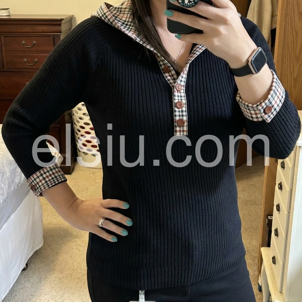 This long sleeve sweatshirt combines classic comfort with refined detailing. The black base provides versatile styling options, while the check trim accents add visual interest and a polished touch. Crafted for everyday wear, it delivers the warmth and durability you'd expect from a quality sweatshirt. The long sleeves offer extended coverage, making it ideal for layering or wearing solo during cooler seasons. A dependable wardrobe staple that balances casual ease with understated sophistication.
