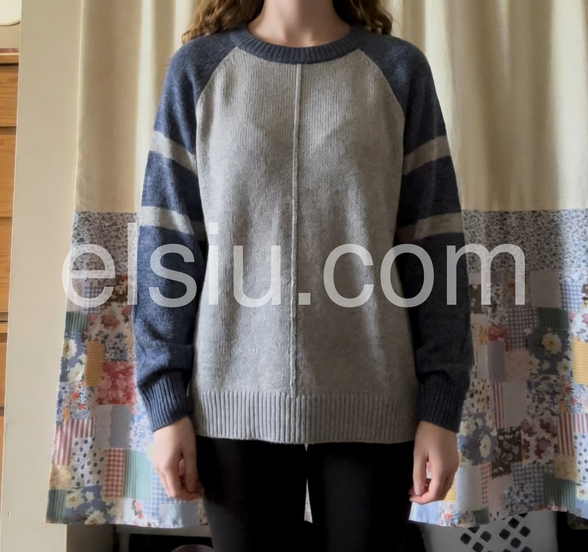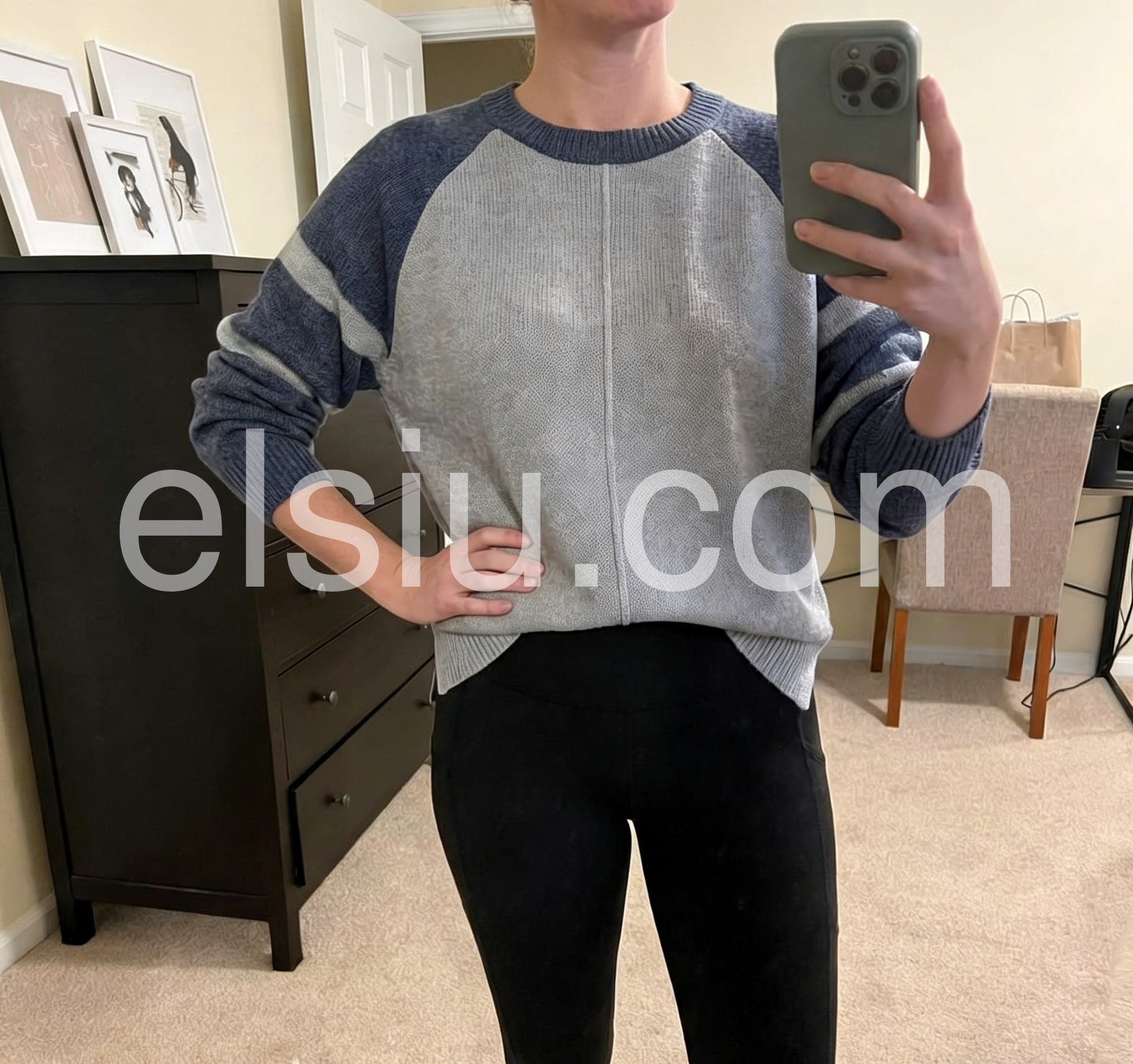 Fresh Color Block Print Round Neck Long Sleeve Sweater